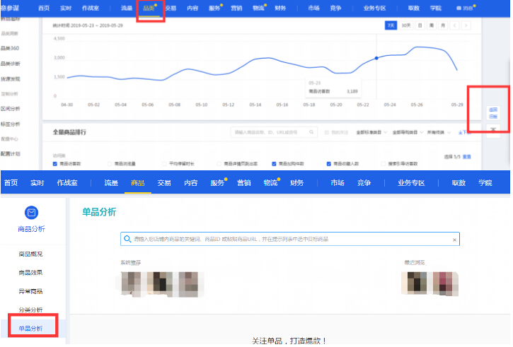 直接进入单品分析页面,查看入口:品类返回旧版就可以看到了