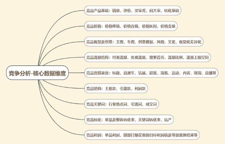 具体的案例分析需要数据的支撑,主要通过市场和产品的综合环境和条件来分析竞争水平,要了解竞店竞品的综合情况,知敌才能胜敌,从数据采集出发,到各维度数据的精准把控,来完善自己,形成更好的竞争条件。